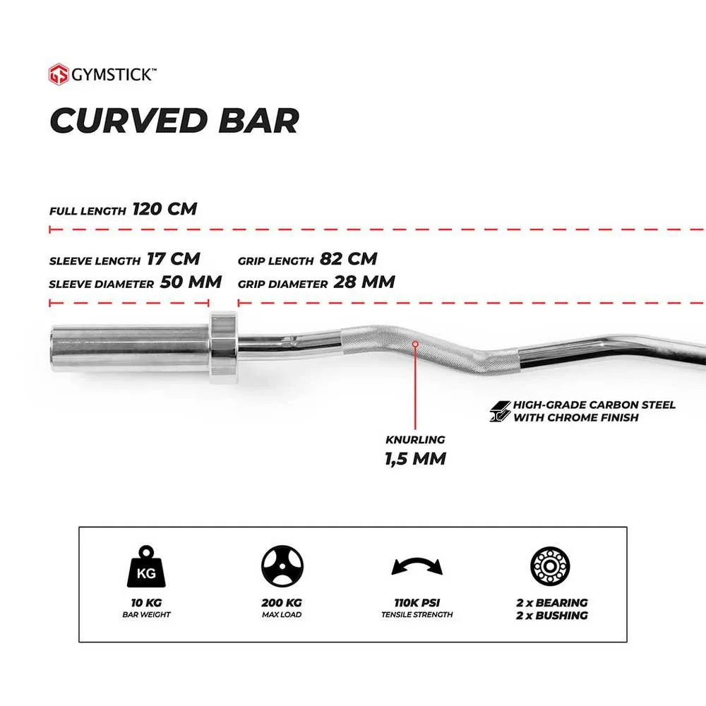 Chrome plated 10kg steel bar with quality bearings suitable for use together with 51mm weight plates.