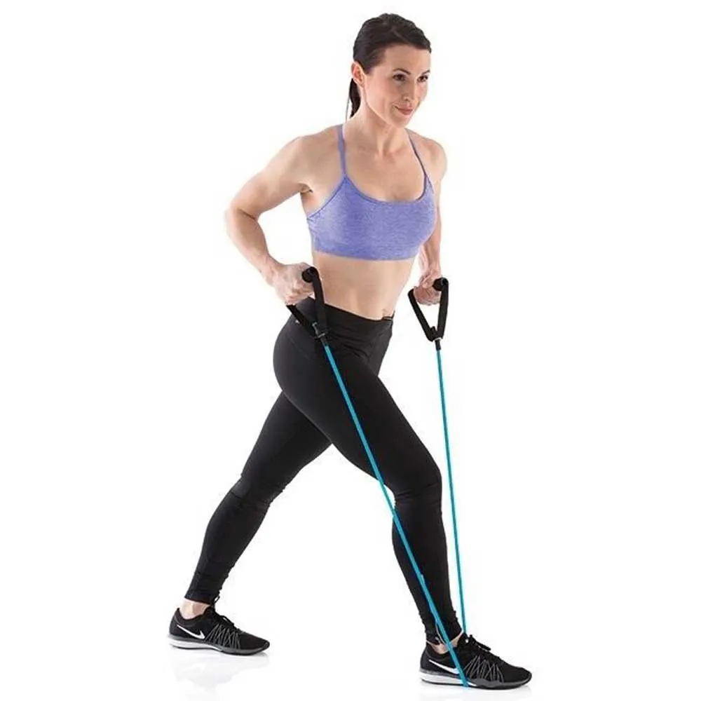 Includes:workout tube with non-slip soft handles, door anchor and a link for Online training.