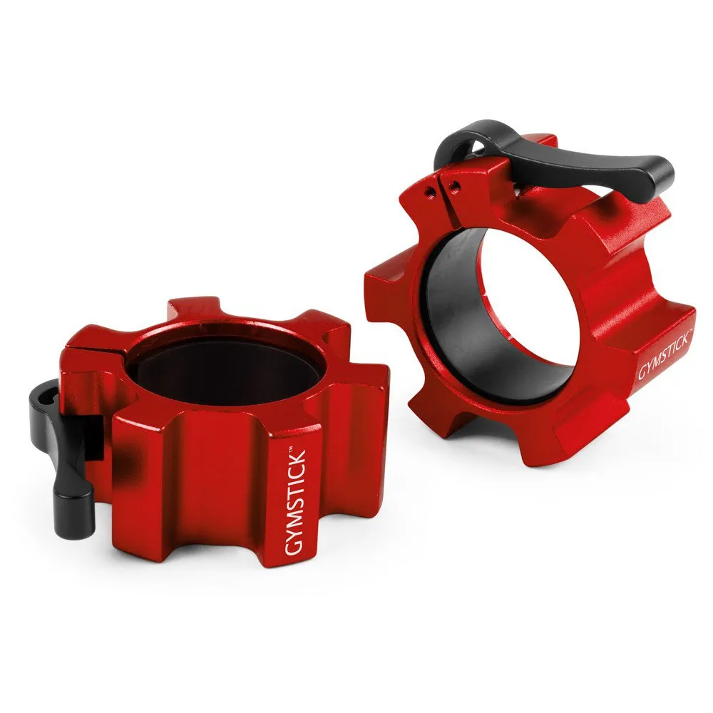 These high quality barbell collars are made of durable, high-grade aluminum to withstand years of usage. Compatible with all standard 50 mm olympic barbells. Extremely easy to lock and load with the fast switch-lock. Comes in red and black.