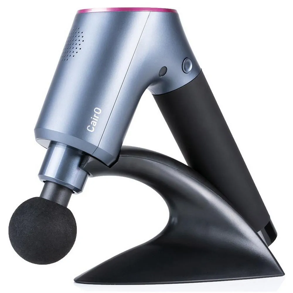 Gymstick CairO Pro is a professional-grade massage gun developed for the demanding use of athletes and all active people. It is a great tool for maintaining healthy and well-performing muscles and can be used before and after exercise. Due to the specifically shaped angle, the massage gun is an excellent choice for independent usage. The angle shaped design allows for an ergonomic and solid grip for the user, and helps massaging hard to reach muscles. CairO Pro brings power without sacrificing battery life. FIve massaging speeds and multiple different massaging heads make the massage gun usable for all types of muscle tension. With the CairO Pro you will also receive a handy and modern stand, so the device can be stored conveniently.