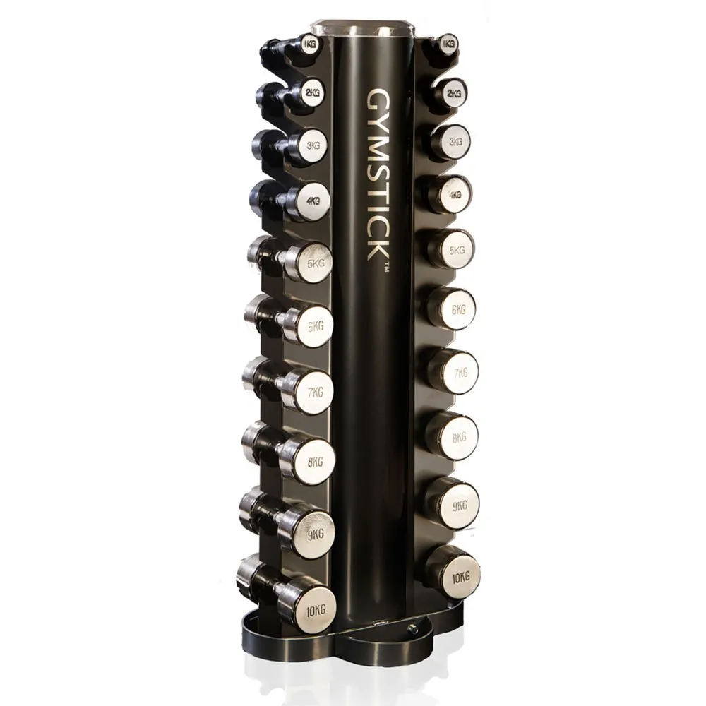 This good quality 2-sided space saving black tower rack offers an excellent racking arrangement for Chrome dumbbells 1-10kg.